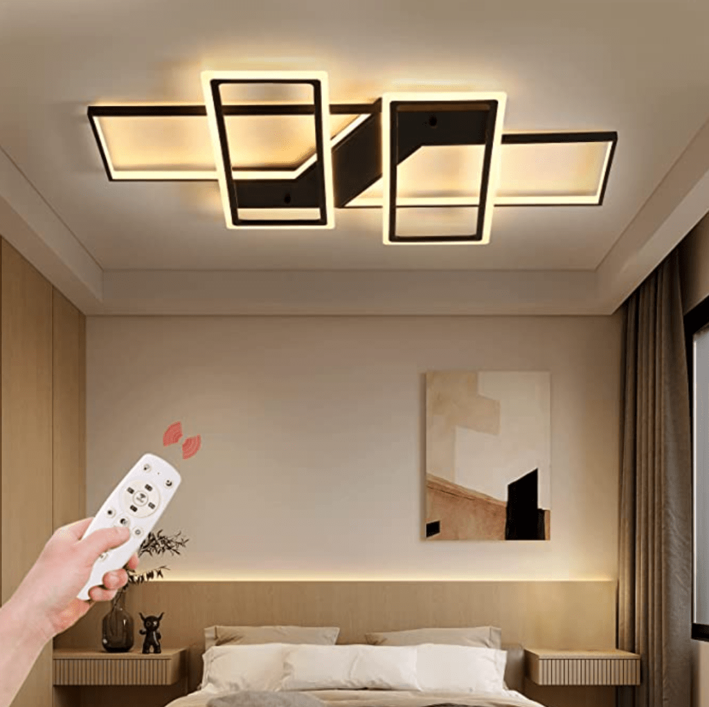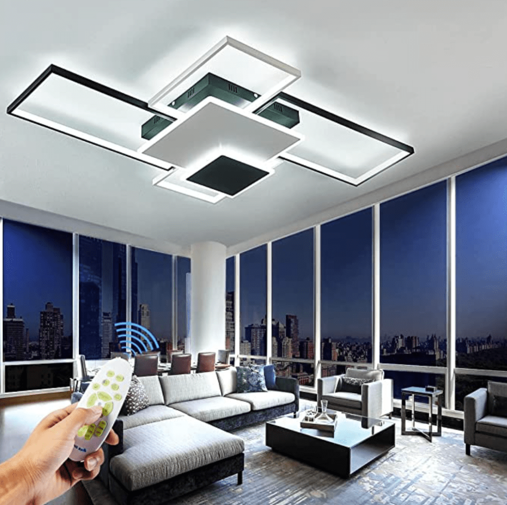 Ideal indoor lamparas de techo modernas. Using the remote control, you can stepless dimming. The color temperature can be adjusted, from warm white 3000K to daylight white 6000K. The darkness can be adjusted, from dark to bright, up to 6000lm, to meet your different needs. The LED light source has high brightness and long life, reducing the number of lamp changes, and the life span is as long as 50,000 hours. Save you a lot of money and time.