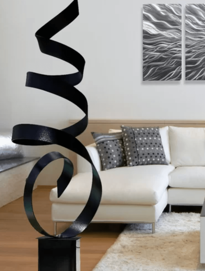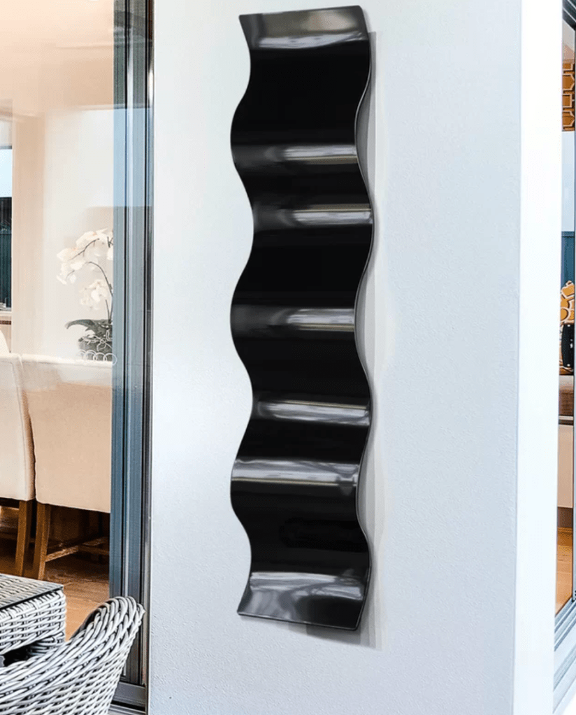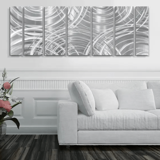 his eye catching, all natural silver & black hand-etched wall accent, Trifecta by Jon Allen, is the perfect complement for your contemporary, modern, or traditional home décor. Original metal artwork comes to life in natural light or under gallery / track lighting for dramatic effect.