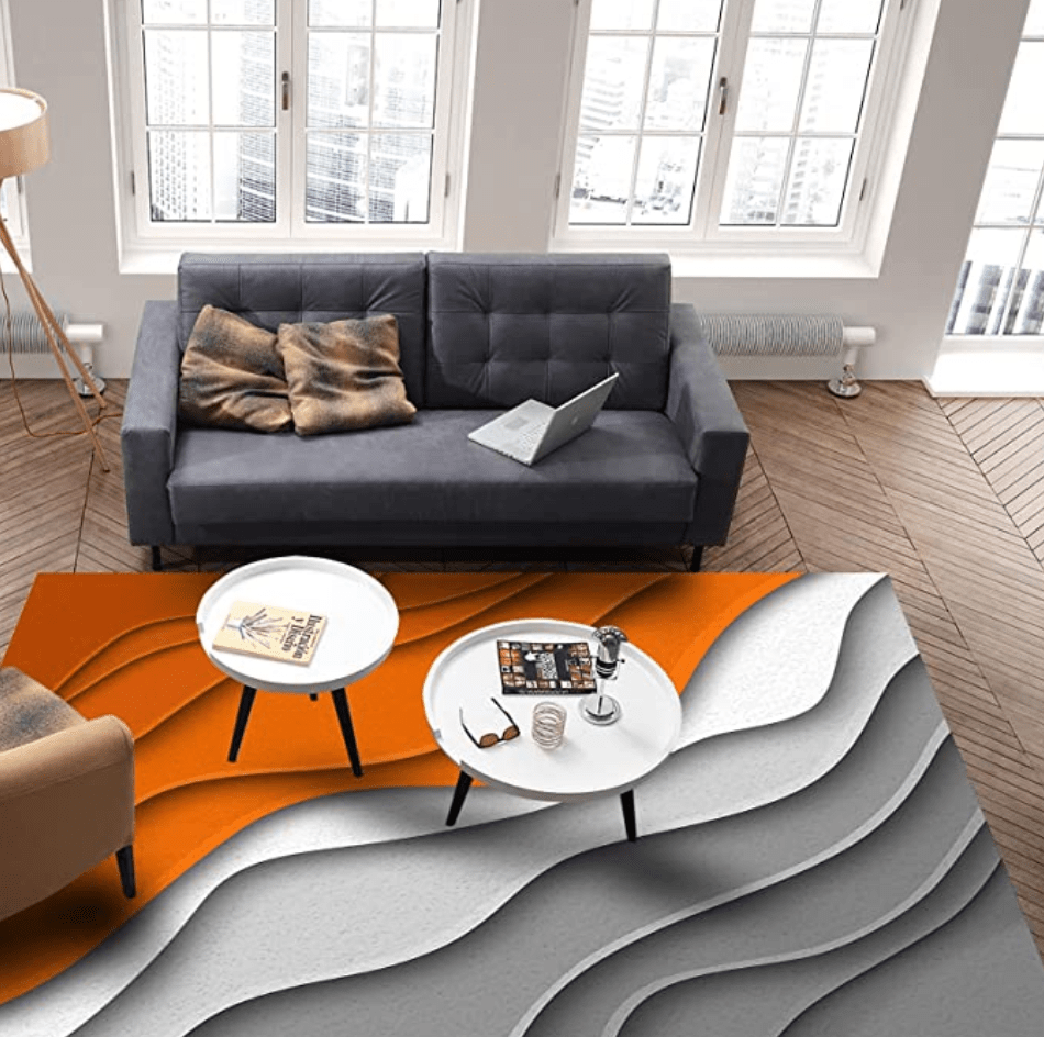 The Orange Beach Wave Area Rugs are Fade and Stain Proof, not shed, durable, especially its non-skid performance is the most prominent, its rubber backing design makes it increase the friction force of contact with the ground, thereby increasing safety