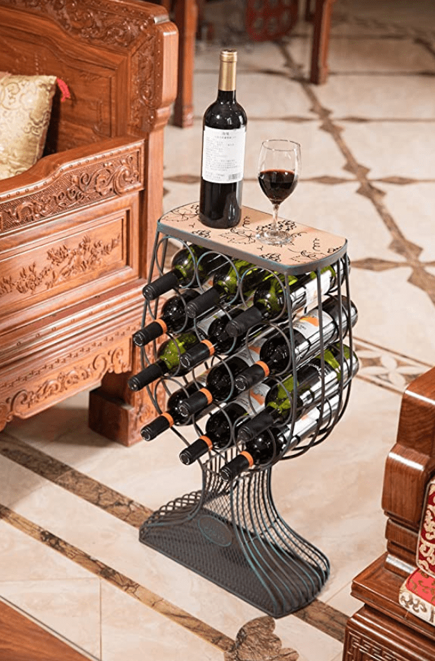 - Goblet shaped wine rack holds up to 12 bottles and makes a great gift display